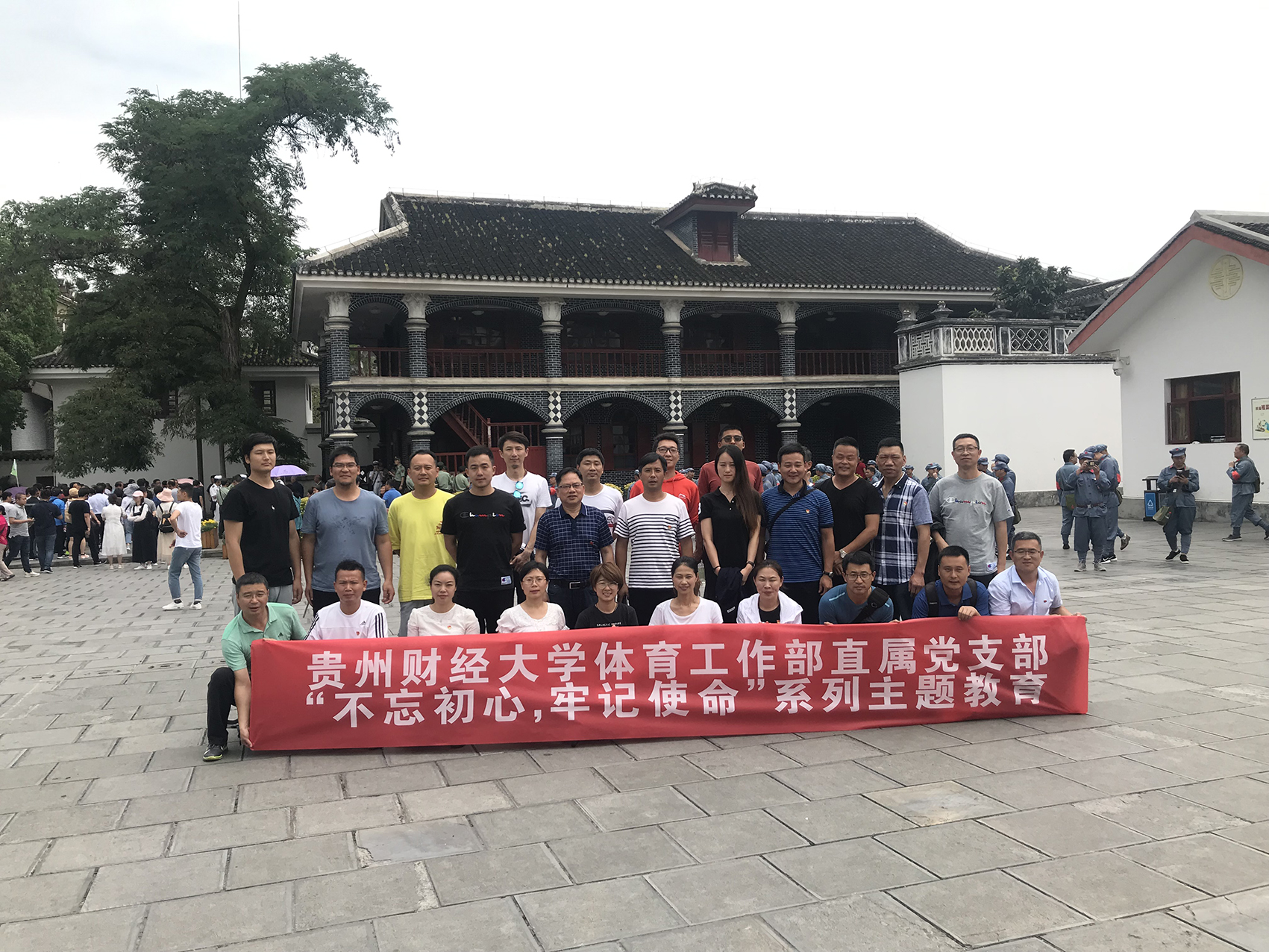 遵义是没有围墙的革命历史博物馆,是接受革命传统教育和党性教育的生动课堂;遵义会议是确定毛泽东为代表的马克思主义的正确路线在党的领导地位,更是中国红军长征的转折点。为缅怀党的奋斗历程,重温党的光辉历史,弘扬长征精神,传承红色基因,进一步强化理想信念,在中国共产党建党98周年之际,6月25日体育工作部直属党支部组织全体党员、统战对象、群众代表等35人赴遵义会址开展“不忘初心、牢记使命”系列主题教育。