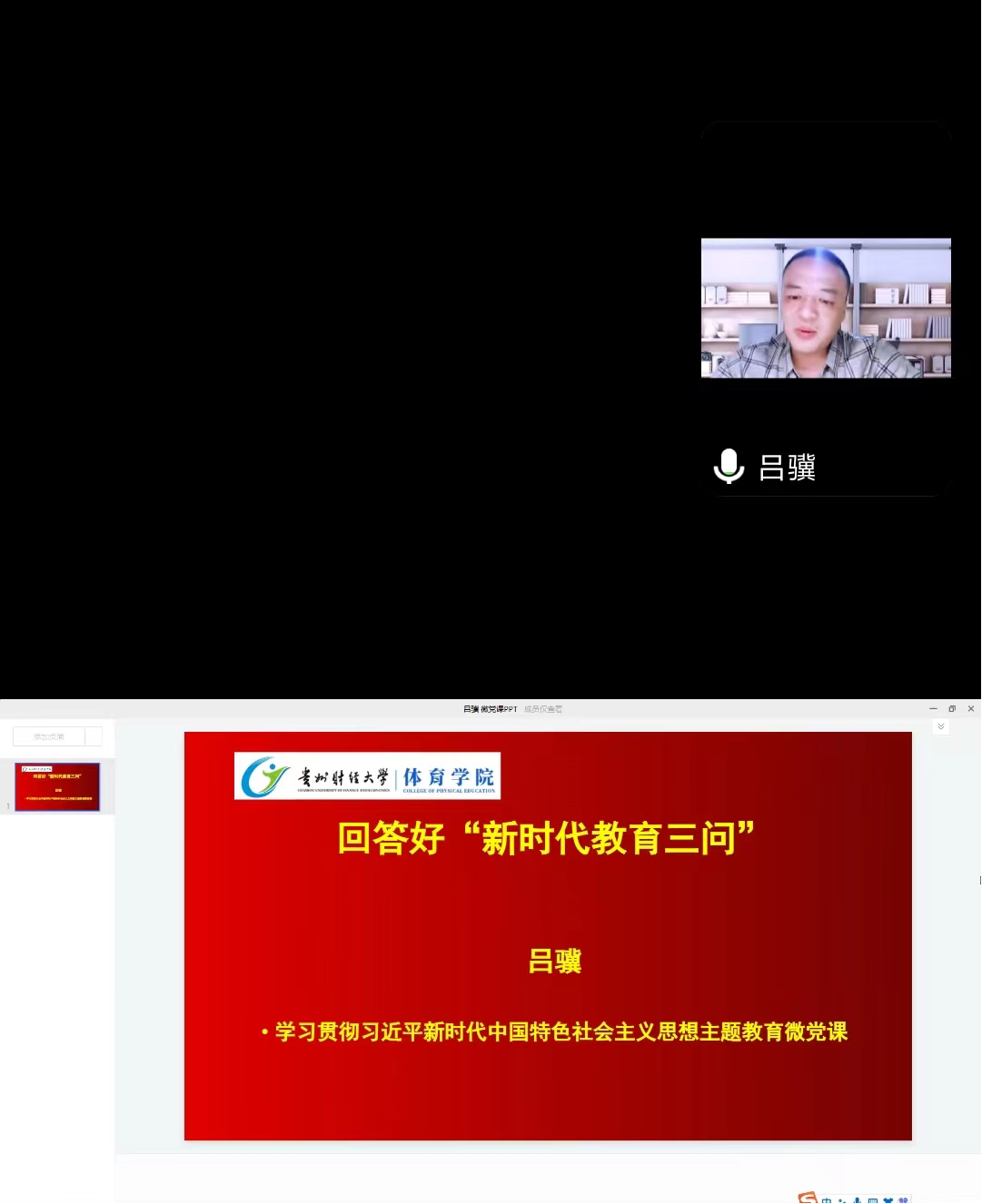 党委副书记、纪委书记(兼)吕骥同志在腾讯会议为全体党员上了一堂题目为《回答好“新时代教育三问”》的微党课。