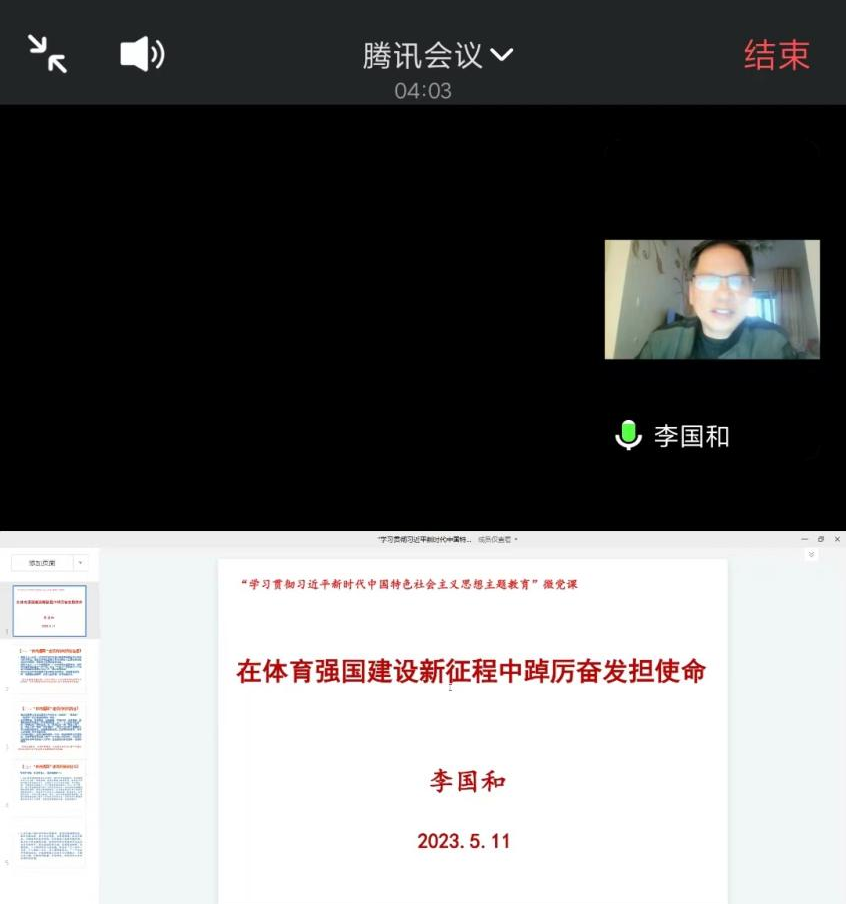 为把学习贯彻习近平新时代中国特色社会主义思想主题教育不断引向深入,2023年5月11日,做爱漫画 党委书记李国和同志为全体党员上了一堂题目为《在体育强国建设中踔厉奋发担使命》的微党课。