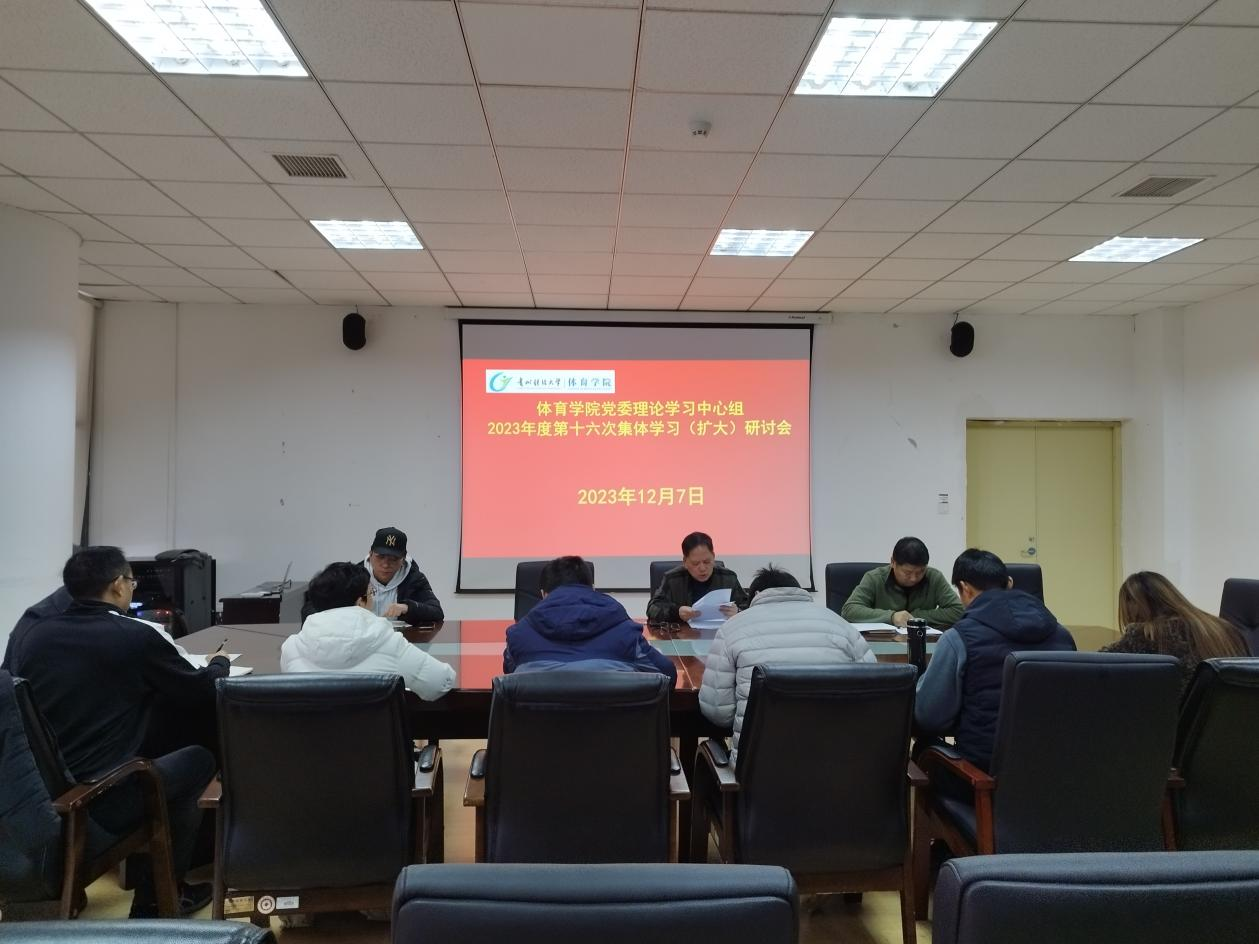 12月7日,学院党委理论学习中心组2023年度第十六次集体学习(扩大)研讨会在做爱漫画 会议室举行。院党委书记李国和主持并讲话,院党委委员、副院长龚卫华,院党委委员向宇宏出席会议,各科室、系部(中心)负责人、支部书记参加会议。