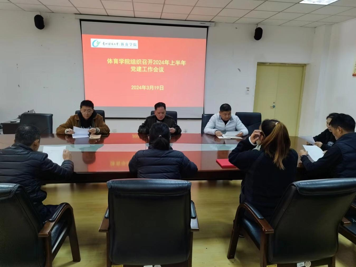 李国和提出四点工作要求,一是要持续深入学习贯彻习近平总书记重要讲话精神,坚持党的全面领导,坚定“四个自信”,坚决做到“两个维护”。二是要全面落实学校党建与思想政治工作部署,为学校事业高质量发展提供坚强的政治保障。三是要切实增强做好党建工作的责任感、使命感,以党建工作为引领,推动学院体育工作高质量发展。四是要改进工作作风,按照学院2024年党建工作安排,狠抓工作落实,确保党的建设各项任务落到实处。