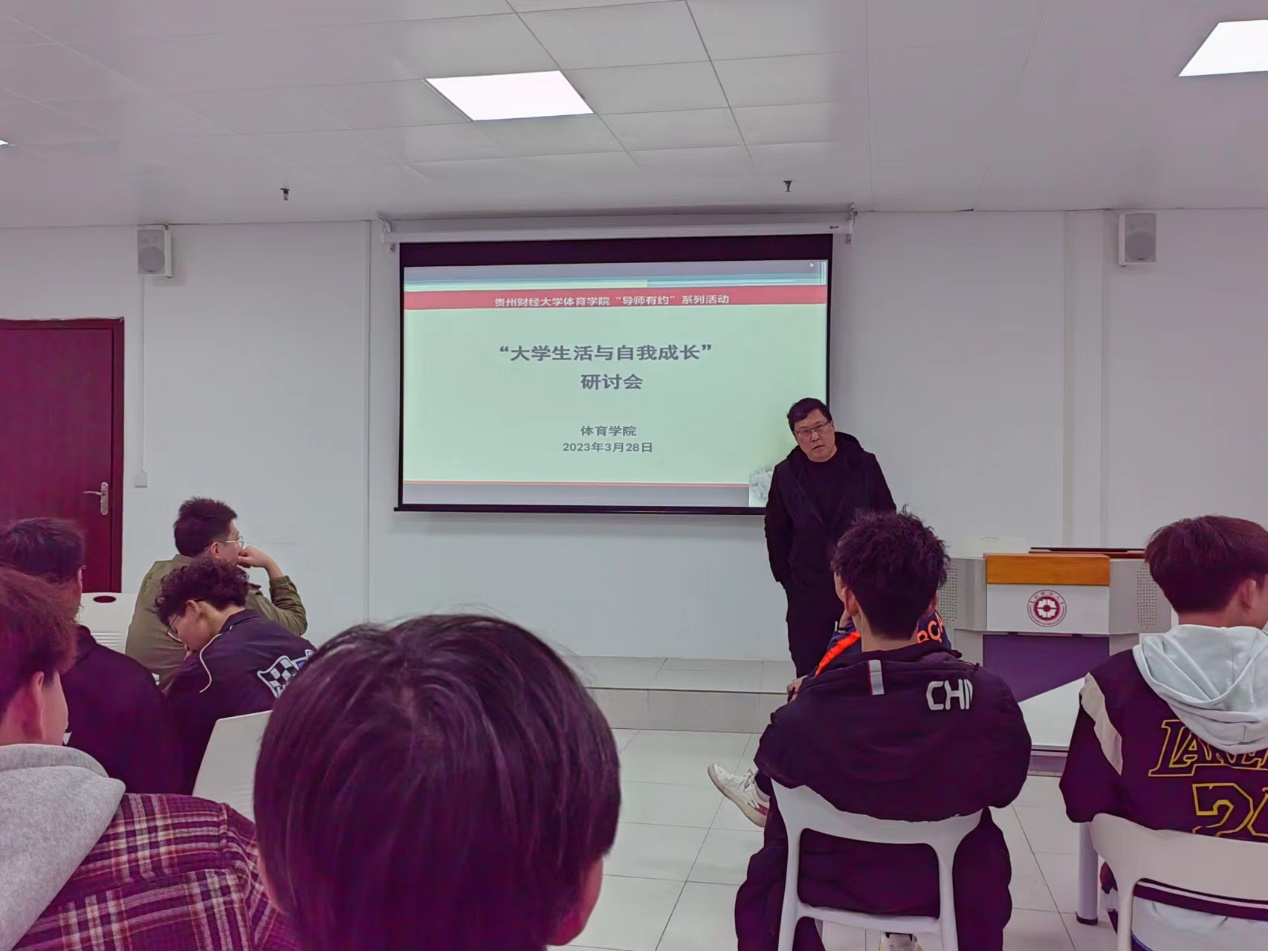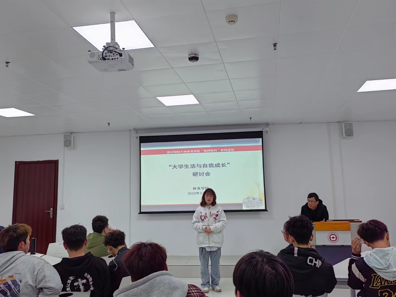 活动伊始,高国贤以体育经管专业学生近期的早操情况为切入点,分析了学生目前在学习和生活方面存在的问题,督促大家要有职业规划意识,尽早明确未来发展方向。柏延洋结合自身求学经历,勉励大家要珍惜大学生活,沉下心,朝着自己的既定目标迈进。王世春鼓励大家要在大学期间找准自我定位和努力方向,掌握一技之长。兰大卫分享了自己的留学经历,希望大家转变学习观念,养成自主学习的习惯。向宇宏鼓励大家要积极参与丰富多彩的课外活动,与其他学院学生主动交流,培养自己的社交能力,同时,要养成“每日三省吾身”的习惯。霍兴彦结合求学及工作经历,鼓励大家要尽己所能提升学历水平,并培养认真自律的学习习惯。