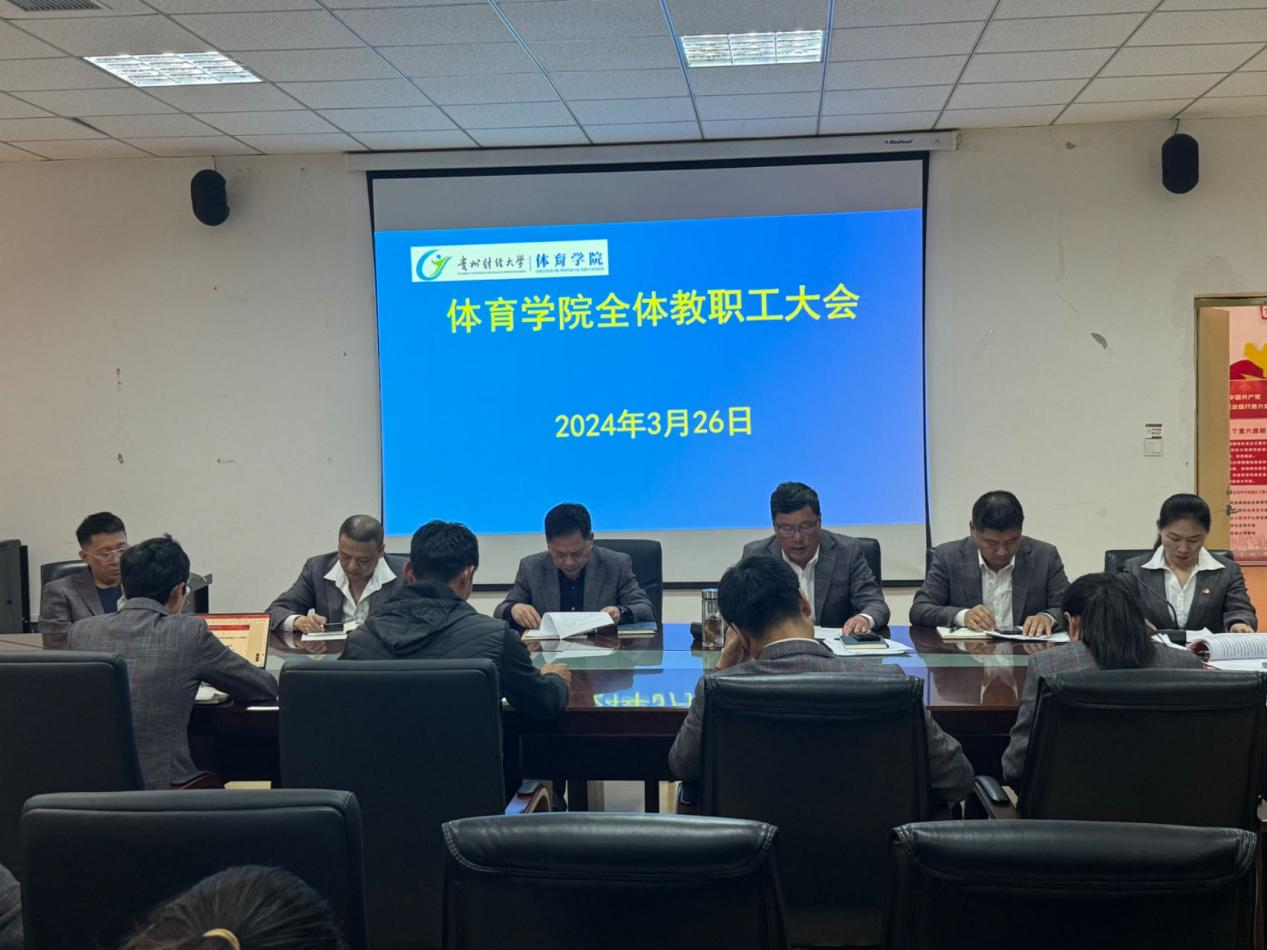 余兵院长作学院工作报告,他从学科建设、教学活动、运动竞赛、科研成果、财务收支等方面进行了总结。过去一年,学院在学科建设上不断完善,在运动竞赛上取得了历史性突破,教师在省级校级教学比赛中取得优异成绩,立项两项省哲社课题。虽取得一定成绩,但也存在很多不足,余兵院长也根据存在的问题提出了改进措施。