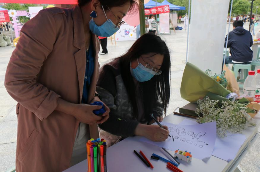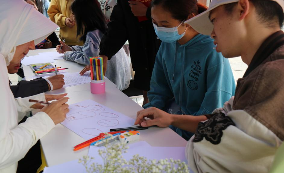 在活动中,我院负责呈现特色活动区,设置了一个展台,展示本学院心理健康特色活动,同时推出心理健康相关宣传和活动,形式以绘画为主。活动期间,学生会全体成员认真负责,维护了现场的秩序,使绘画活动有条不紊地开展。活动现场氛围热烈,同学们络绎不绝,争先恐后,积极参与其中。