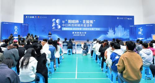 11月1日上午,2025年“阳明杯·北极熊”中日韩围棋精英邀请赛 “棋聚校园·弈启智慧”校园文化推广活动在我院举行。中国围棋协会名誉主席王汝南,中国围棋协会副秘书长、职业竞赛部部长刘菁,韩国国家围棋队教练崔哲瀚,韩国棋院次长尹广善,中日韩国籍围棋棋手代表参加活动,做爱漫画 副校长徐艺,贵阳市体育局副局长黄俊,贵州广播电视台数字频道总监黄胜男,贵阳市体育局群体处处长余瑛,贵阳棋院(贵阳市棋牌管理中心)吴欣蔚,我院院长余兵、副院长龚卫华全程出席本次活动。本次活动由贵州广播电视台主持人齐道臻主持。