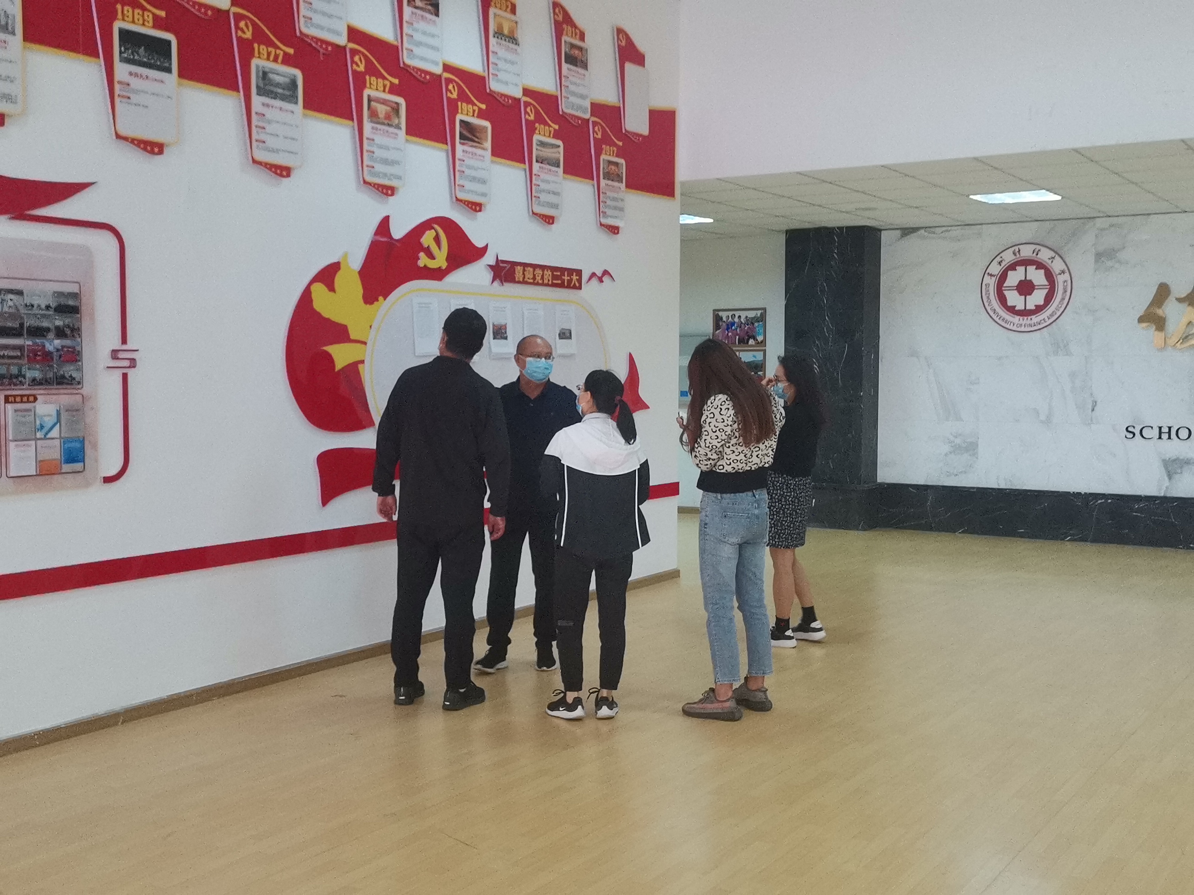 墙面宣传内容主要分为党建宣传、行政事务宣传和竞赛成绩宣传。周晶一行对展示内容进行了全面检查,对学院党委高度重视新闻宣传与意识形态工作给与了肯定,同时就使用党旗、党徽、专业术语的规范性、标准性和严肃性提出了要求。
