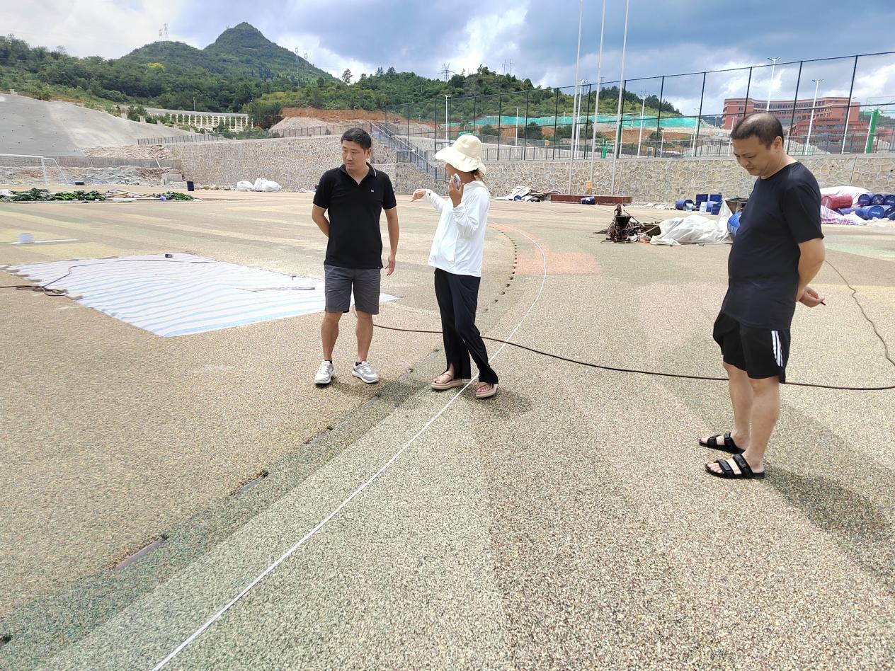 7月12日下午,学院副书记吕骥、副院长龚卫华、场馆管理中心负责人王玉清一行到学校东区检查体育运动场馆建设情况,与施工单位现场负责人就施工工艺、工程时间等问题进行沟通,指出现场施工存在的问题。