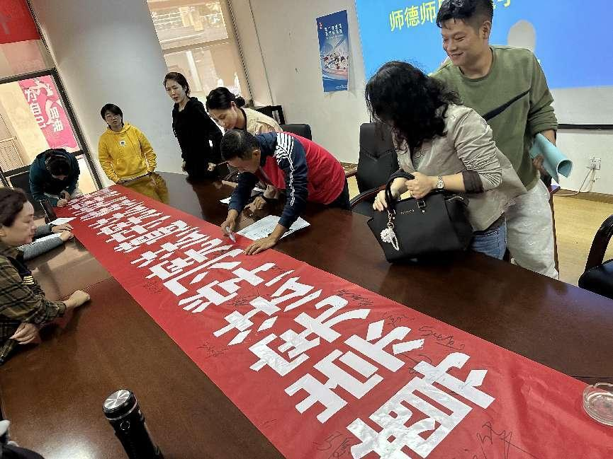 党委书记李国和带领全体教职工了解宪法的发展史、宣讲宪法内容,让教职工了解了更多的法律知识,增强了法律观念。活动现场气氛热烈、秩序井然,老师们用行动阐述着对宪法的敬畏之情,郑重地在横幅上签下姓名。