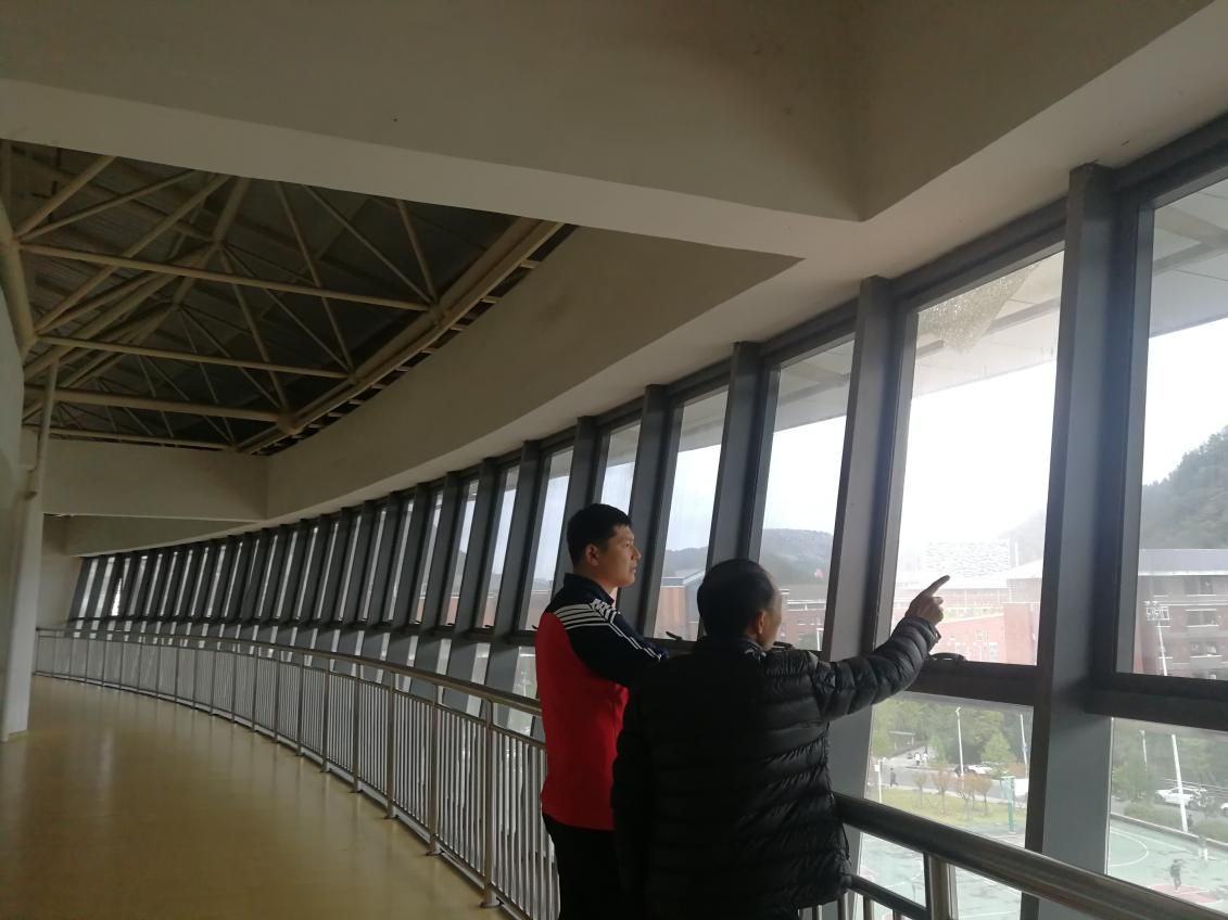 院长余兵、副院长龚卫华率场馆中心老师以及场馆工作人员,对学校场馆进行了全部安全检查。