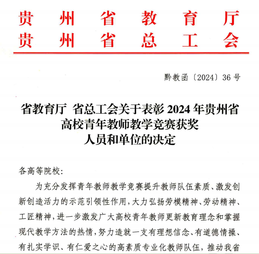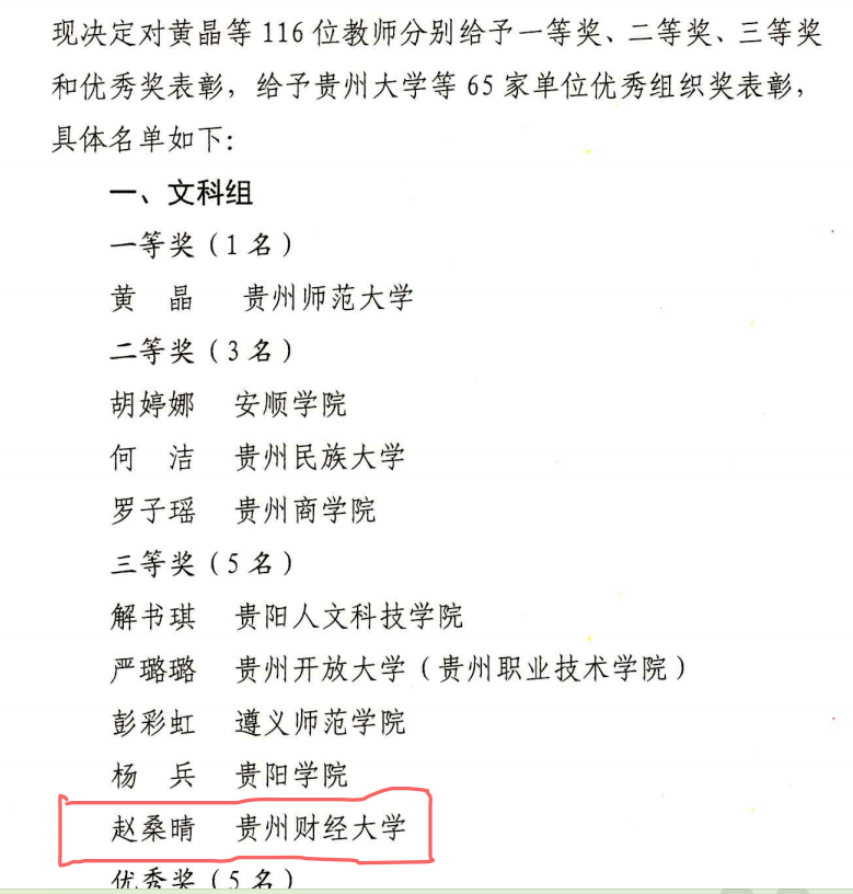 祝贺我院赵桑晴老师荣获2024年贵州省高校青年教师教学竞赛文科组三等奖!