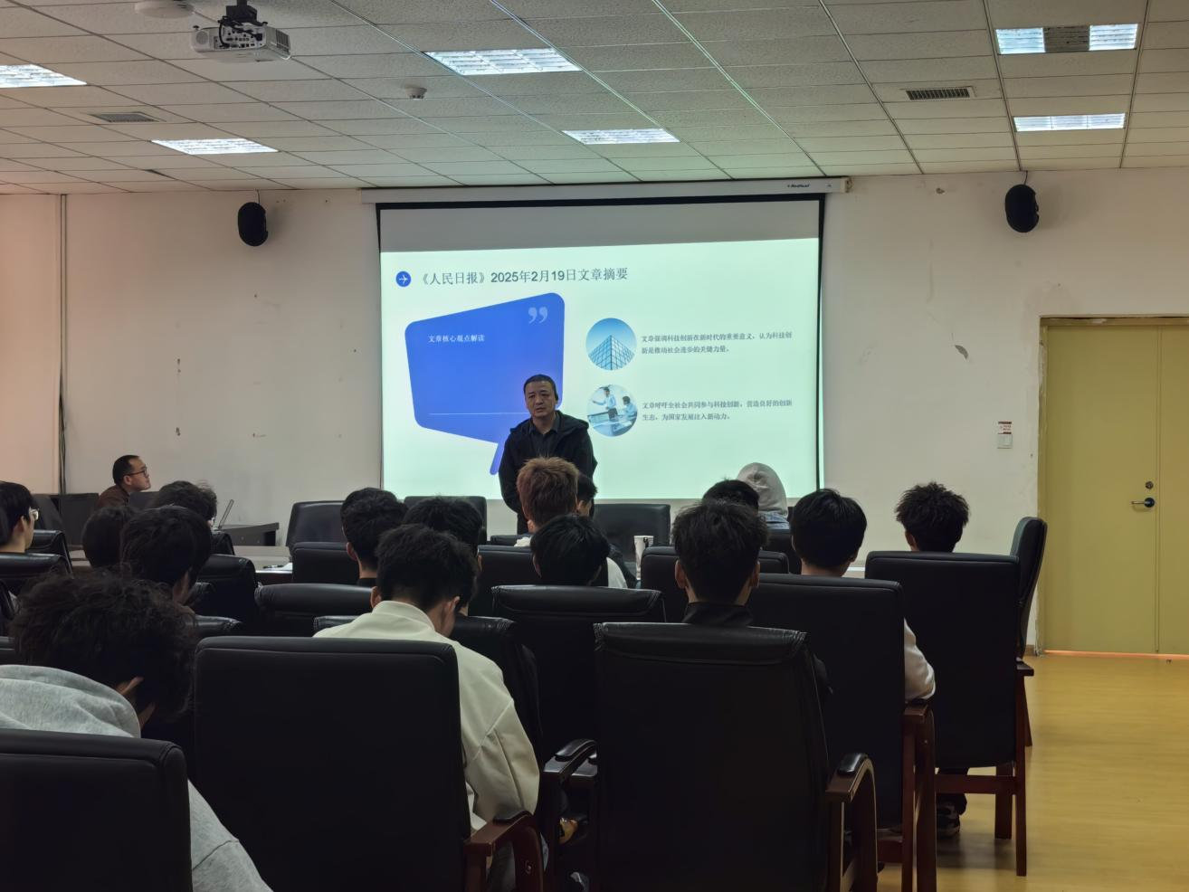 在学院会议室成功举办了一场别开生面的系列主题班会,围绕科技创新、文化自信以及遵义会议 90 周年三大主题展开深入探讨。学院副书记吕骥出席活动,学生科科长梁永杰博士担任主讲人,吸引了众多学生积极参与。
