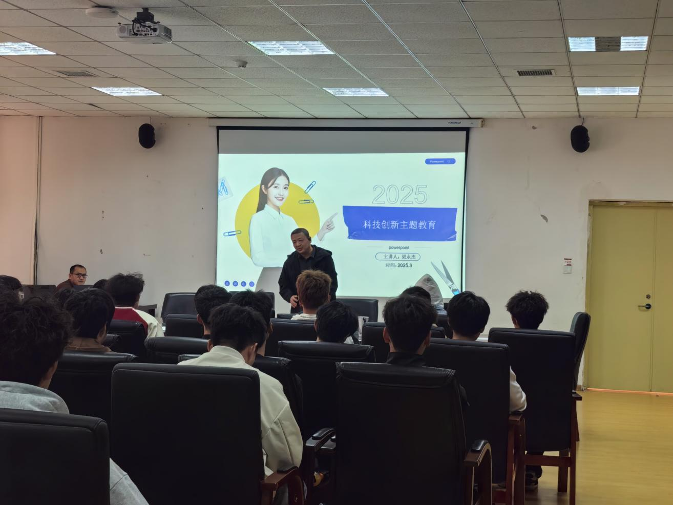 在科技创新主题班会上,主讲老师梁博士紧扣当下热点,以 2.5 亿中国人拥抱 AI 的热潮为切入点,迅速抓住了同学们的注意力。随后,他结合习近平总书记对创新的重要论述,深入浅出地剖析了科技创新在推动社会进步、改善生活质量等方面的关键作用。互动环节中,同学们积极踊跃,就人工智能、大数据等前沿科技提出诸多问题,梁博士一一耐心解答,并鼓励大家崇尚科学,立志为国家科技发展贡献力量。