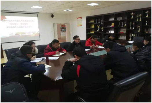 (体工部 陆双妹图文报道)12月3日上午,体育工作部直属党支部在会议室召开主题教育中心组第十三次集中学习研讨会。会议由直属党支部书记李国和主持,直属党支部委员、部门科级干部、教研室主任、党小组组长均参加,余兵主任列席会议。