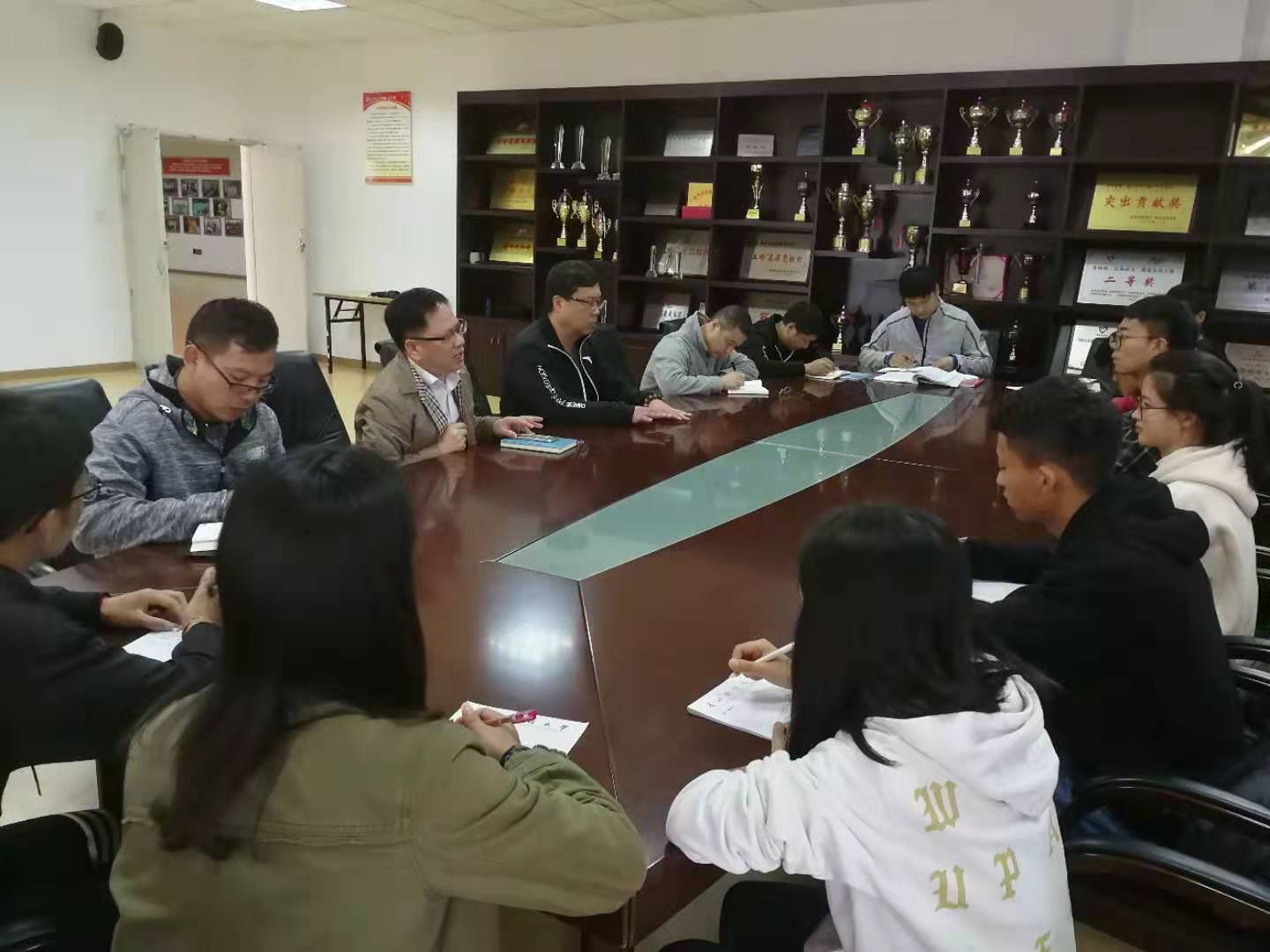 (吴梅报道|摄影 陆双妹)10月17日中午,体育工作部召开“不忘初心、牢记使命”主题教育专题调研座谈会。座谈会由体育工作部直属党支部书记李国和主持,体育工作部主任余兵参加了调研座谈会,各科室负责人及来自全校12个学院24名学生代表参加了会议。